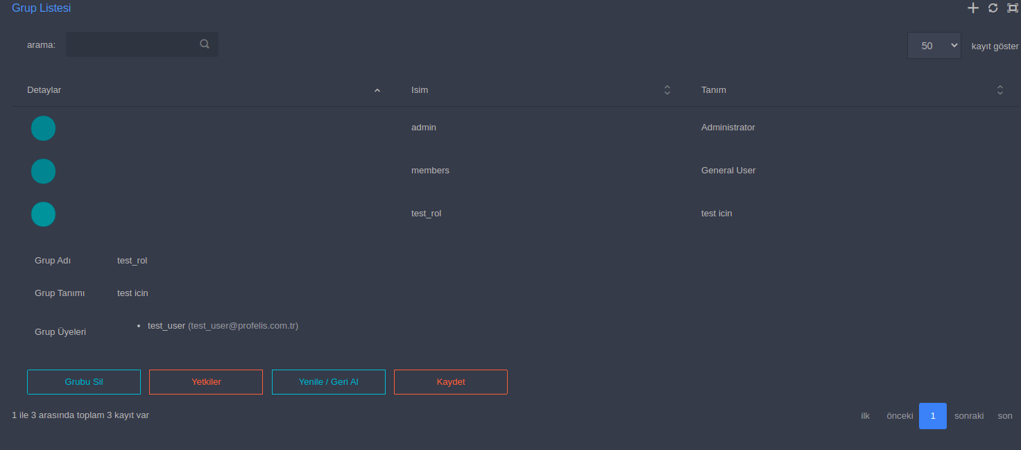 Rol grubunun isimi ve tanımı yazılır ve [Ekle] butonuna basılır.