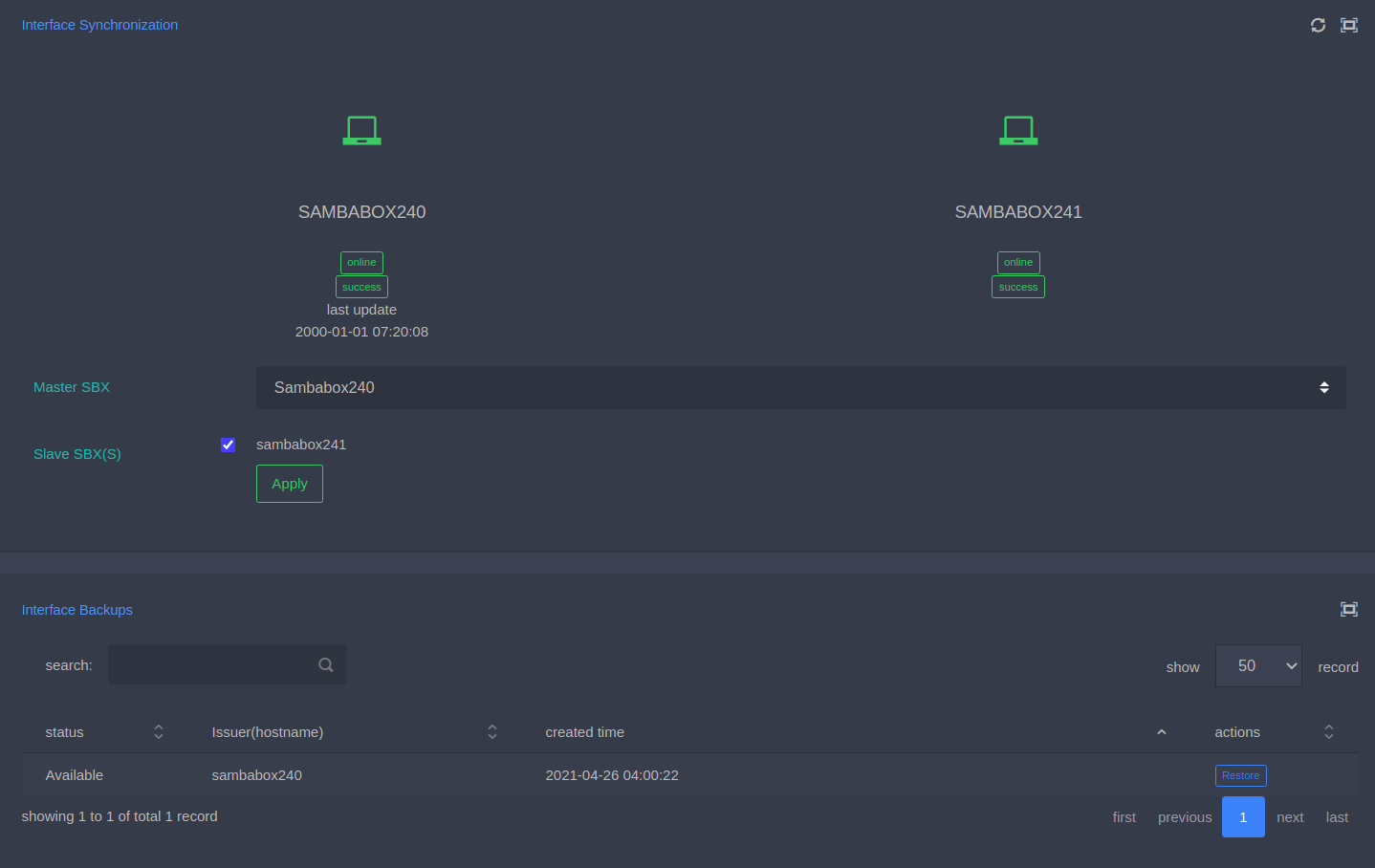 Arayüz senkronizasyonu başarılı olarak gerçekleştirildiğinde hedef SambaBox larda daha önceden oluşturulmnuş Rol ve Kullanıcılar yedeklenerek silinecektir.