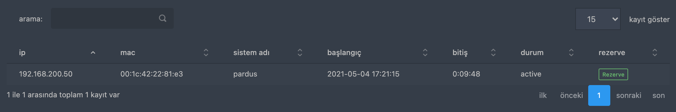 Kiramalar ekranında DHCP sunucunun IP tahsis ettiği (kiraladığı) istemciler listelenir.