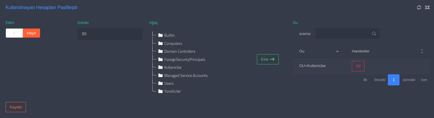 Ağaç görünümünden hangi OU nun kontrol edileceğini seçin ve [Ekle] butonuna basın.