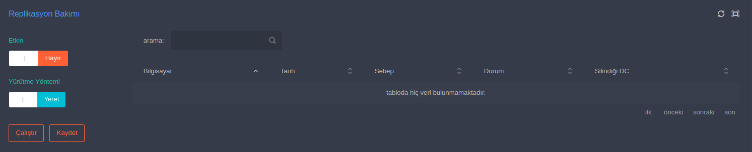 Replikasyon bakımını etkin hale getirdiğinizde 10 dakikada bir sunucular kontrol edilecektir. Schema Mismatch hatasına sebep olan bilgisayar hesabı bulunacak ve temizlenecektir. [Çalıştır] butonu bu süreyi beklemeden kontrol ve bakım işlemini gerçekleştirir.