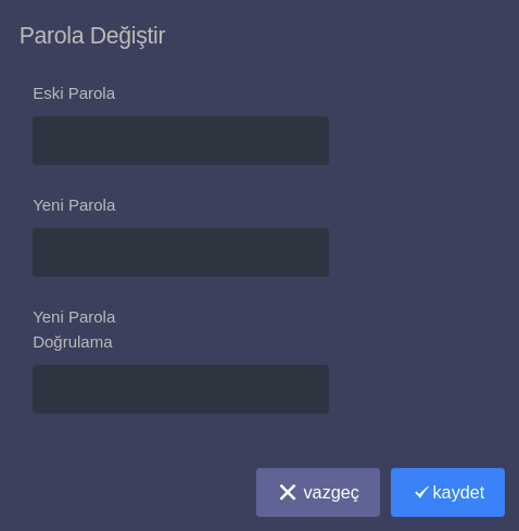 Yönetim Paneli arayüzünde sağ üst köşede, dil seçiminin altında olan kullanıcı menüsünde bulunur. Bu menüde [Parola Değiştir] adımından Yönetim Paneli parolanızı değiştrebilirsiniz.