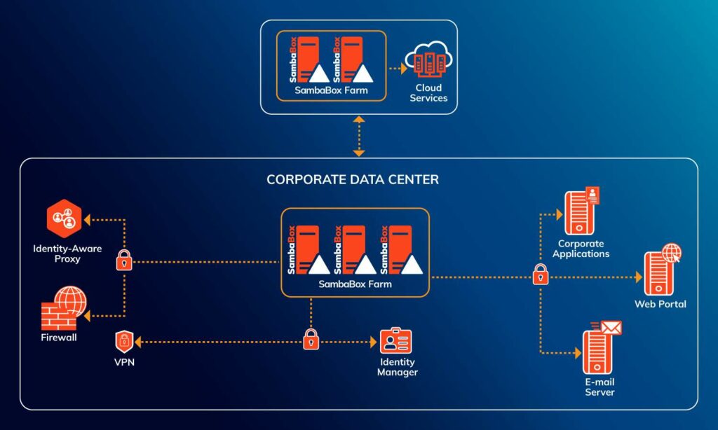 Corporate organizations use different solutions for their directory needs, such as Active Directory, eDirectory, and so on. Authentication services are set up to work with other applications and services to provide centralized management and reduce operating costs. They also manage their identities with a structure like IDM because of a wide range of other products in use at the same time.SambaBox offers an excellent exchange program that ensures high performance while reducing the costs of corporate organizations. With this program, you will be able to migrate to SambaBox without your data being changed and your users being affected. You can read the Migrate to SambaBox in 4 steps article for details of migration.Corporate organizations that use cloud environments will benefit from smoothly and quickly running as a result of combining local resources and cloud resources with SambaBox.